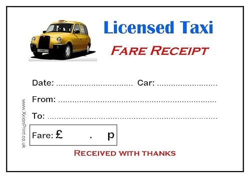 Pack of 6 Colour Printed Licensed Taxi / Cab Fare Receipt Pads with Yellow Taxi Logo - In Stock ...