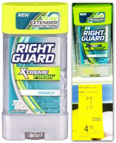 Right Guard Xtreme Defense Deodorant: $1.50 at CVS and Publix We have a new Right Guard coupon to print! Take them to CVS or Publix this week to get Right Guard Xtreme Defense deodorant for only $1.50 each! Check the items you plan to buy to create a printable shopping list! Right Guard Coupon $3/2 Right Guard Xtreme Defense Deodorants printable Right Guard Deals CVS - Right Guard Deodorant, 2 for $6